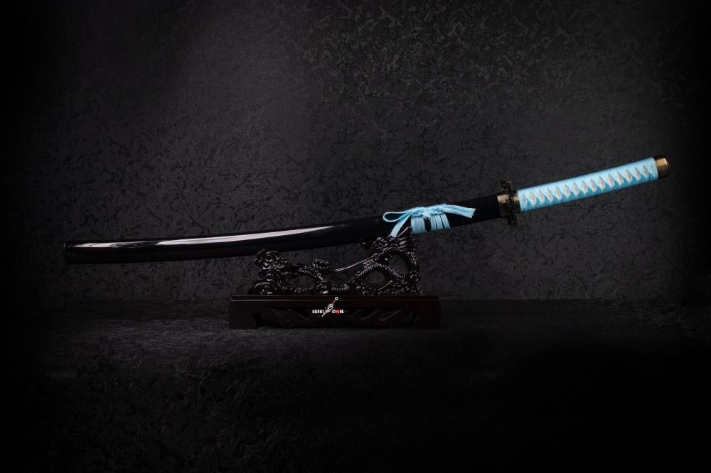 استمتع بإضافة لمسة من الأناقة إلى مجموعتك مع سيف بياكويا الأسود المميز! تصميمه المستوحى من التراث يجمع بين الجمال والدقة، مع لون مقبض أزرق جذاب ولمسات نهائية فائقة الجودة.