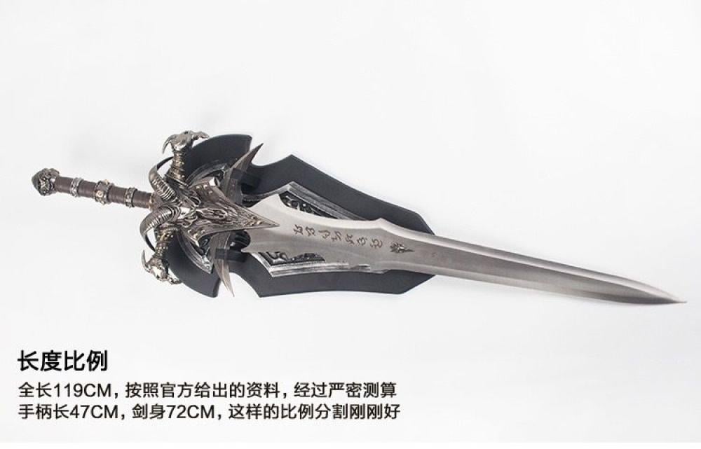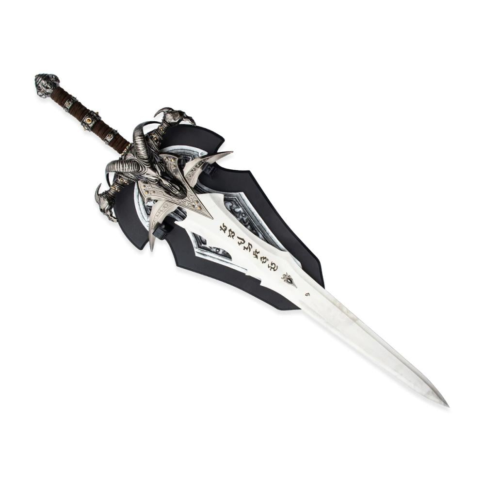 - تصميم مستوحى من لعبة وورلد أوف ووركرافت: سيف فروست مورن نسخة طبق الأصل يمثل قطعة تذكارية رائعة تجسد قوة سيف ليتش كينغ في اللعبة.
