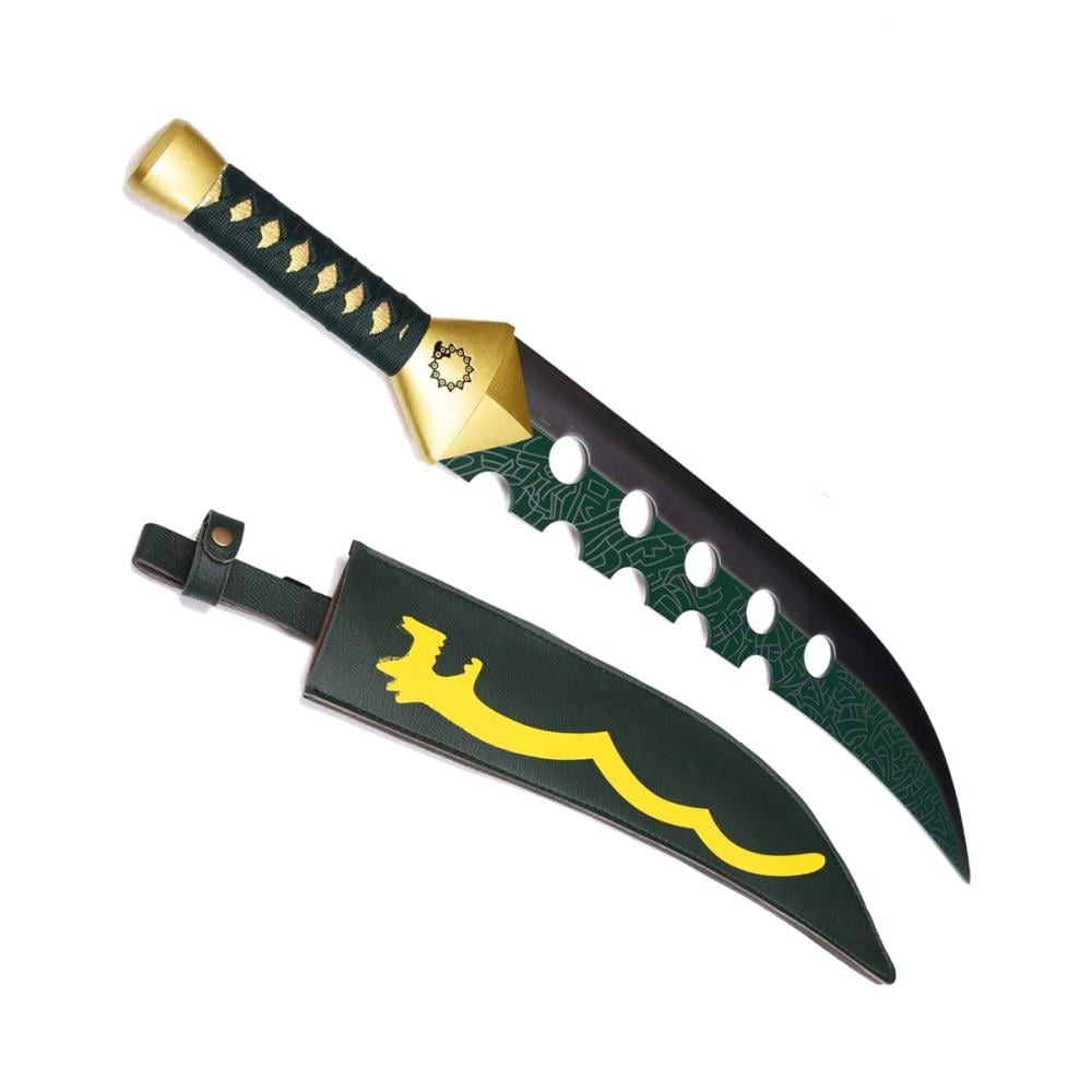 سيف ميليوداس هو رمز القوة والشجاعة المستوحى من شخصية البطل في أنمي "Nanatsu no Taizai" (الفرسان السبعة). تصميمه الجذاب والمفصل يضع بين يديك قطعة فنية تمزج بين الجمال والقوة في آنٍ واحد.