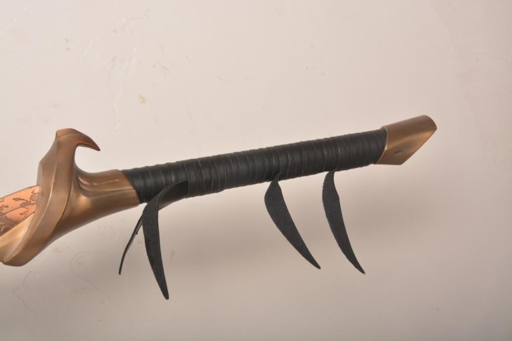 • نصل فريد بتصميم ناب طويل: يمنح السيف شكلاً مميزًا يعكس الوحشية والأسلوب الأسطوري.