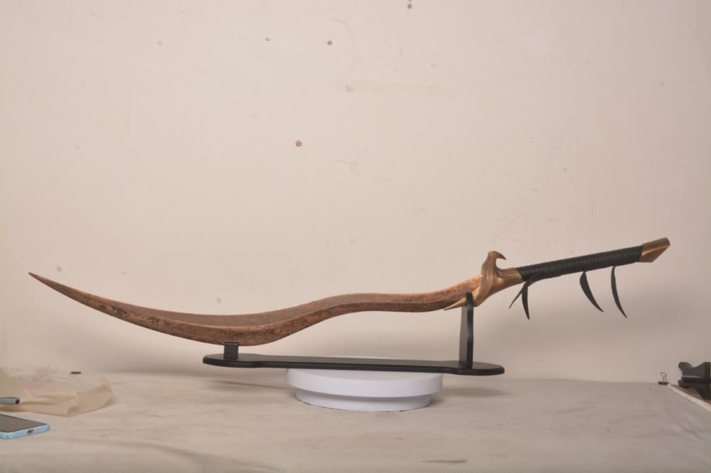 • لوح عرض أنيق: يأتي مع قاعدة خشبية أنيقة لعرض السيف بطريقة فاخرة.